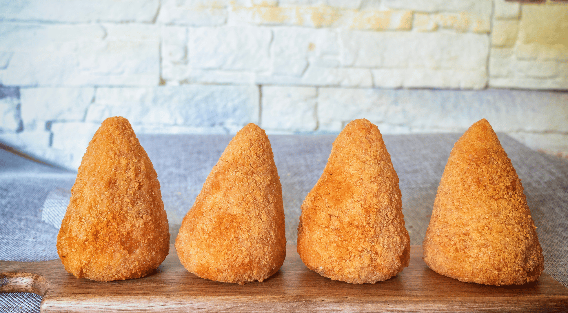Arancini di riso dalla caratteristica forma a punta, realizzati secondo la tradizione siciliana. Farciti con un ricco ragù di carne e formaggio, offrono un’esperienza di gusto autentica e avvolgente.